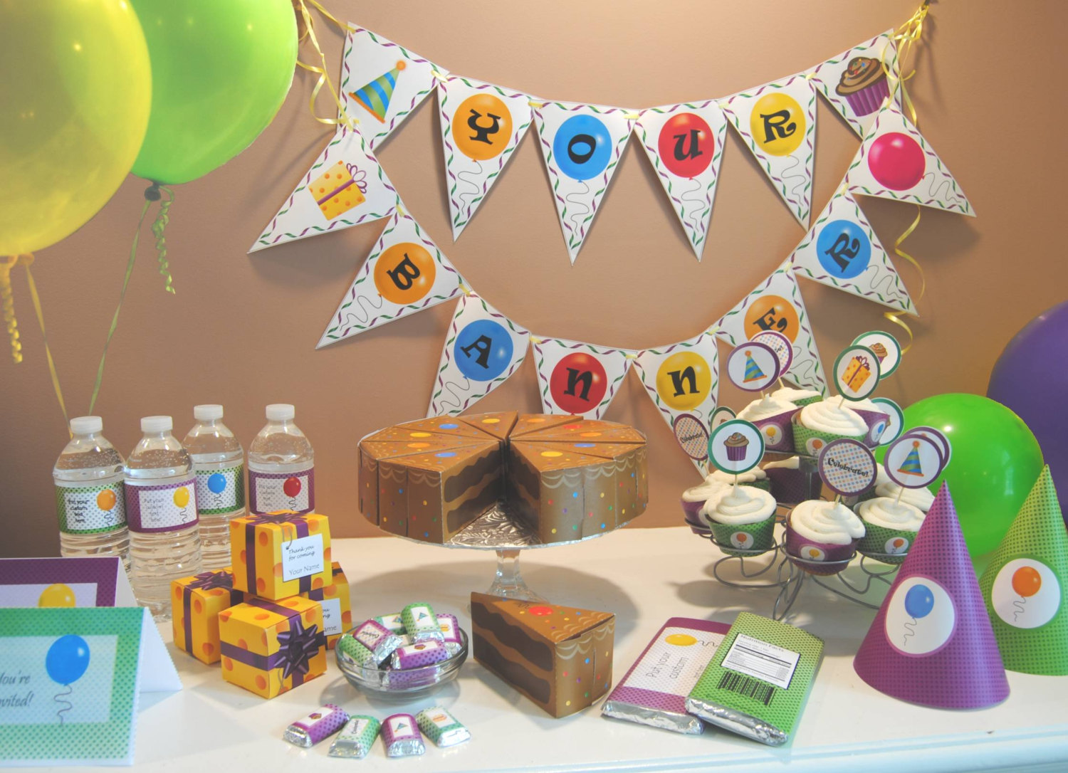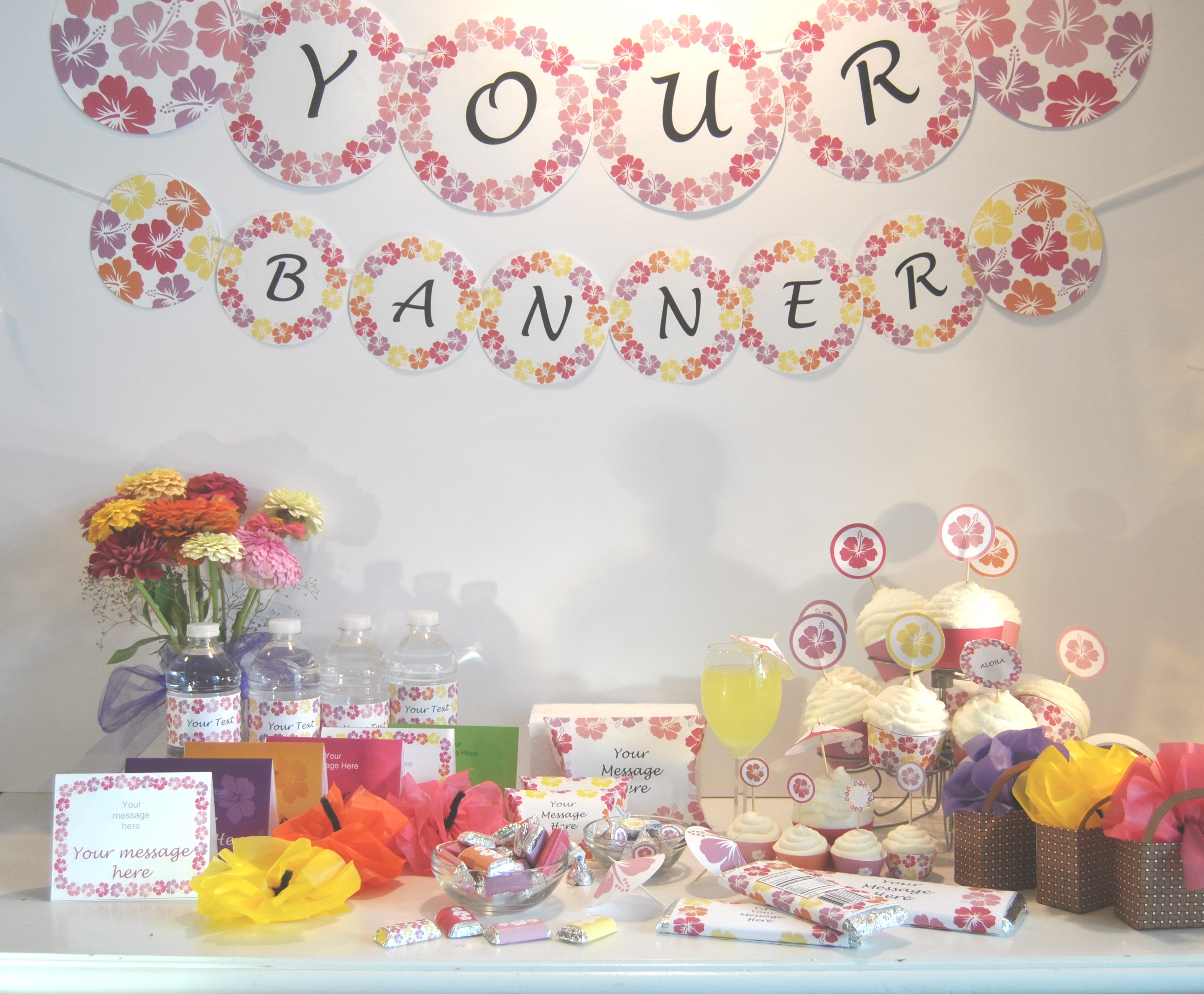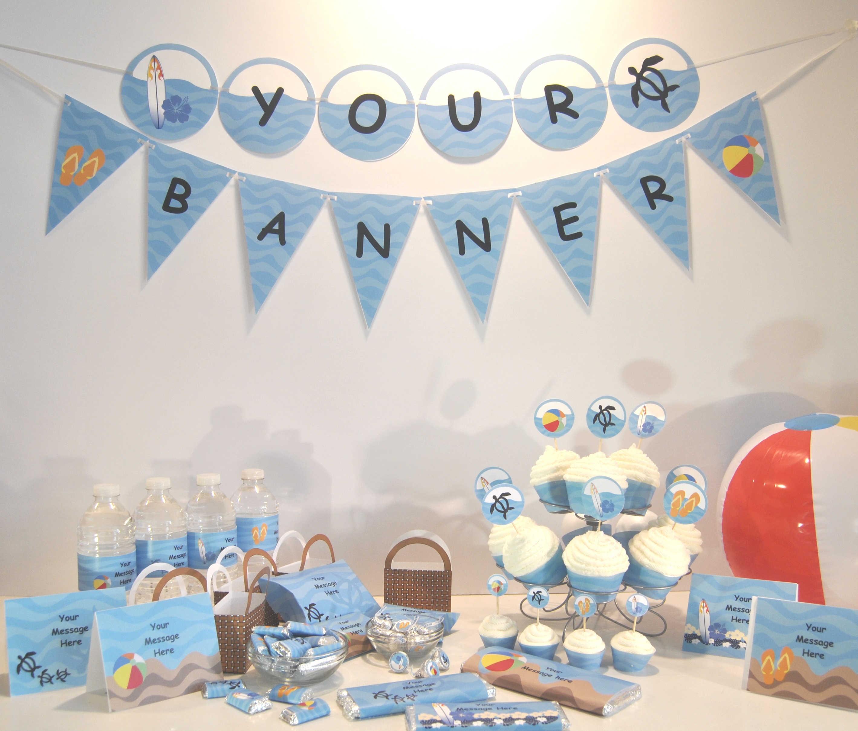 Decorate and accessorize with our NEW party printables. Party printables are coordinating party packs that come as PDF files you can customize and print yourself. Each pack contains everything you will need to decorate for your event including cupcake wrappers, cake toppers, banners, party favours, thank you cards, labels, place cards, posters and more! Many of the items have editable type so you can customize your decorations to say whatever you want them to say.